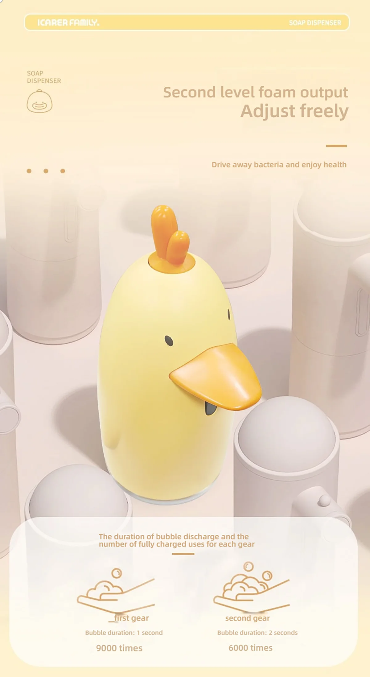 *Cute Design *: This soap dispenser has a cute appearance and will definitely become a favorite of children, encouraging good hygiene habits in a fun way.