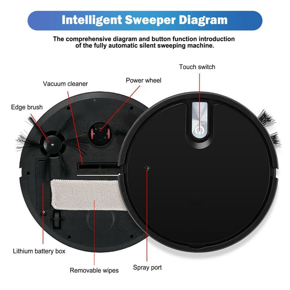 Strong Suction: With a high-efficiency motor that generates strong suction, this sweeping robot can quickly remove dust, stains and other debris from various surfaces such as wood floors, tiles, carpets or marble.